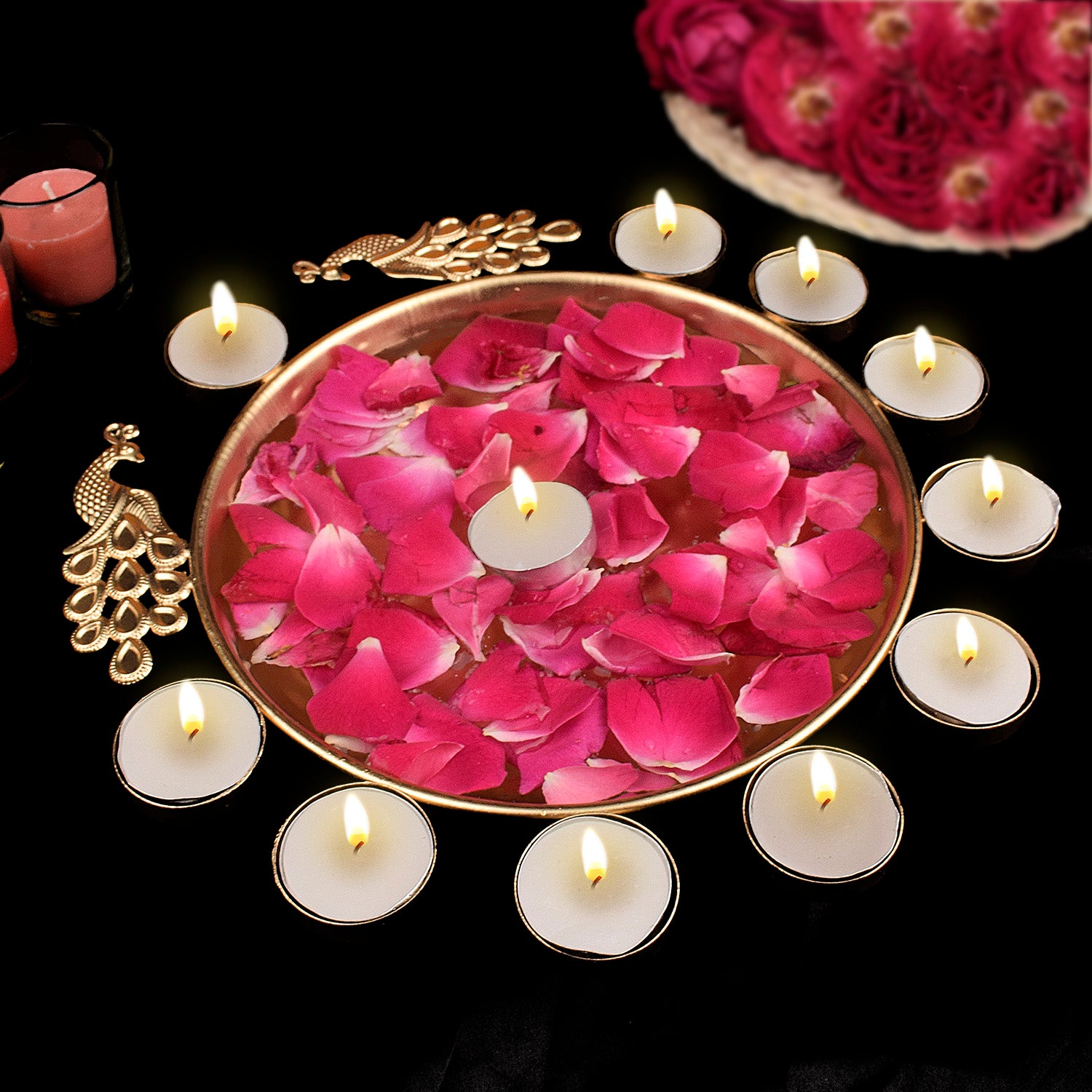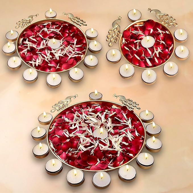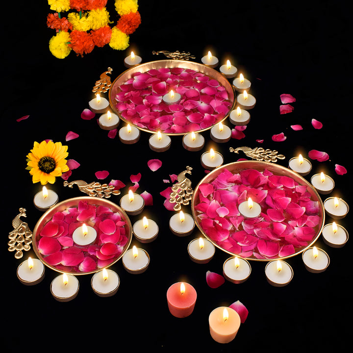 Shop Metal Peacock Flower Urli with Tea Light (Pack of 3) | Satvik – satvikstore.in