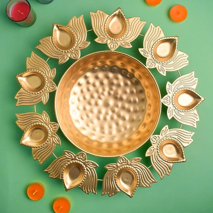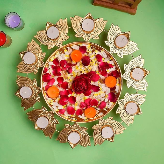 Buy Now | Lotus Petals Shape Metal Urli With Tea Light |Satvikstore.in – satvikstore.in