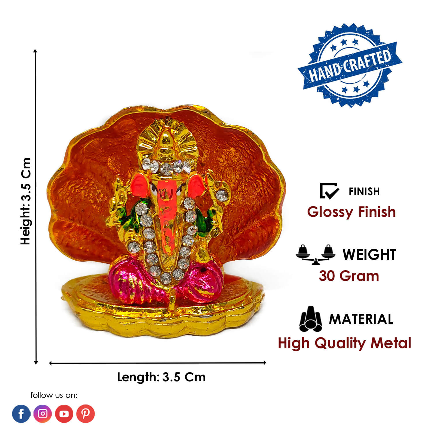About Product: Lord Ganesh, Ganpati, known for Blessing Good Health and Wealth, The Idol Is made from Premium Quality material for long lasting use. Handmade product from the Artisanship of India's Craftsman with Using Modern Style.