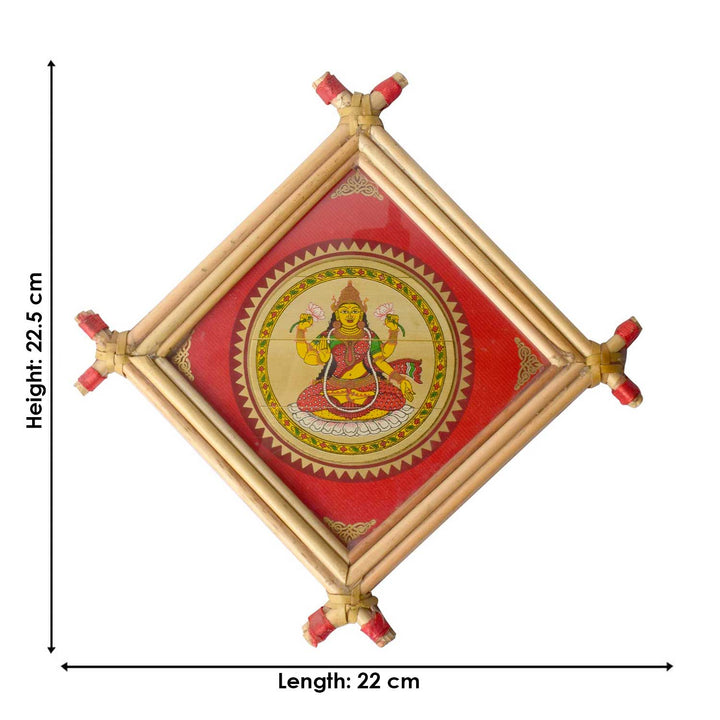 About Product: Embrace traditional art and divine blessings with this Small Laxmi Patachitra Photo Frame. Crafted using the renowned Patachitra painting style from Odisha, this frame beautifully captures the image of Goddess Laxmi, the deity of wealth and prosperity. The intricate detailing and vibrant colors reflect the rich cultural heritage of India. Enclosed in a sturdy wooden frame, this wall decor brings spiritual elegance and artistic grace to any corner of your home, office, or pooja room.