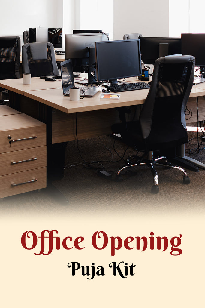 The "Office Opening Puja Kit" is a meticulously curated collection of essential items designed to facilitate the auspicious inauguration of a new workplace or office space. This kit typically includes various sacred items such as incense sticks, a small idol or image of a deity, holy water, camphor, a diya (oil lamp), and flowers.