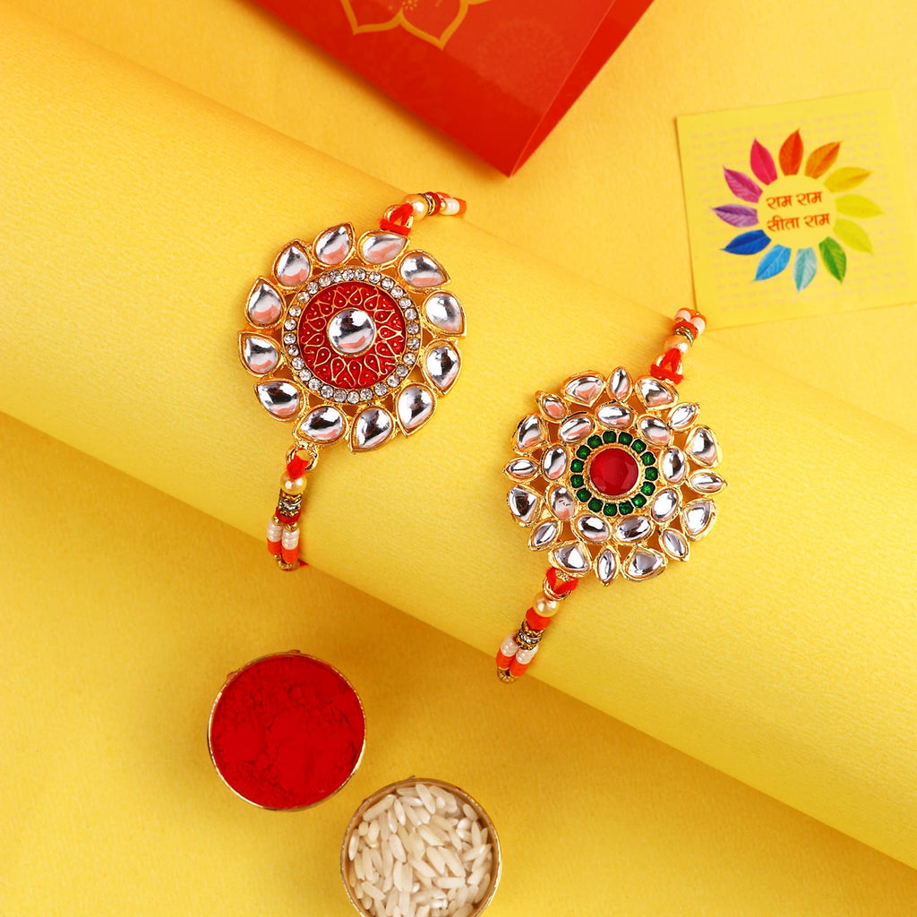 What's more, our online shopping experience ensures convenience and accessibility. With just a few clicks, you can browse through our collection, select the ideal Bhaiya Bhabhi Rakhi set, and proceed with your purchase. We understand the importance of timely delivery, and our reliable shipping services ensure that your chosen Rakhi reaches your bhaiya and bhabhi, no matter where they are in the world.