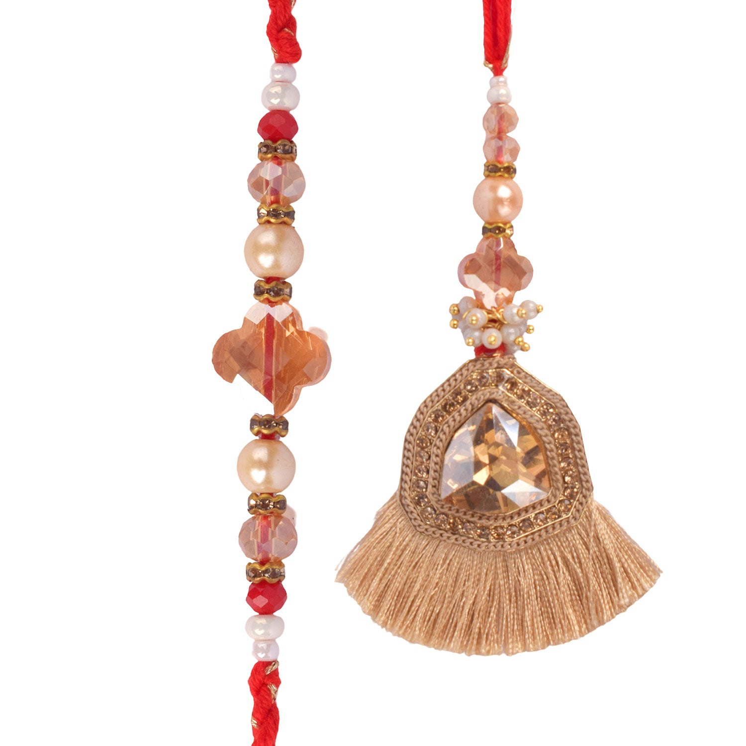 • About Product: Celebrate the eternal bond of love and tradition with this beautifully crafted Couple Rakhi Set designed for Bhaiya and Bhabhi. The men’s rakhi is bold and elegant, while the women’s lumba is graceful and festive—perfectly complementing each other as a symbol of togetherness.