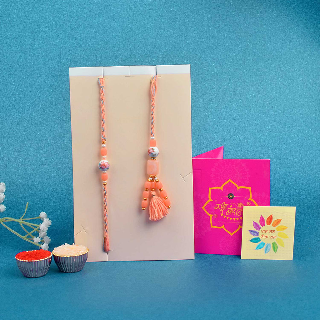 For those looking for a touch of elegance and uniqueness, our Agate Stone Bhaiya Bhabhi Rakhi collection is an ideal choice. The Agate stone, with its mesmerizing patterns and vibrant hues, adds a touch of sophistication and charm to these Rakhis. The Agate Stone Bhaiya Bhabhi Rakhi set is a perfect blend of spirituality, style, and protection, symbolizing the divine blessings and the unbreakable bond between the couple.