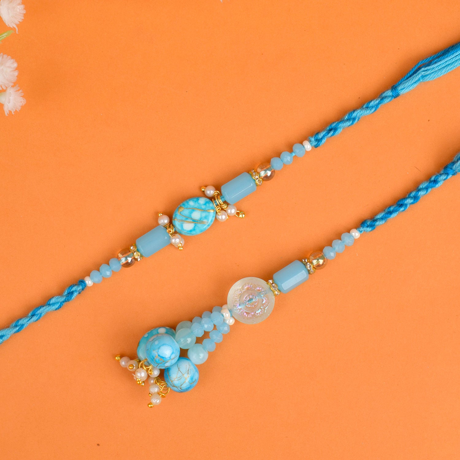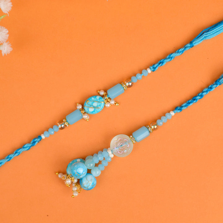 For those looking for a touch of elegance and uniqueness, our Agate Stone Bhaiya Bhabhi Rakhi collection is an ideal choice. The Agate stone, with its mesmerizing patterns and vibrant hues, adds a touch of sophistication and charm to these Rakhis. The Agate Stone Bhaiya Bhabhi Rakhi set is a perfect blend of spirituality, style, and protection, symbolizing the divine blessings and the unbreakable bond between the couple.