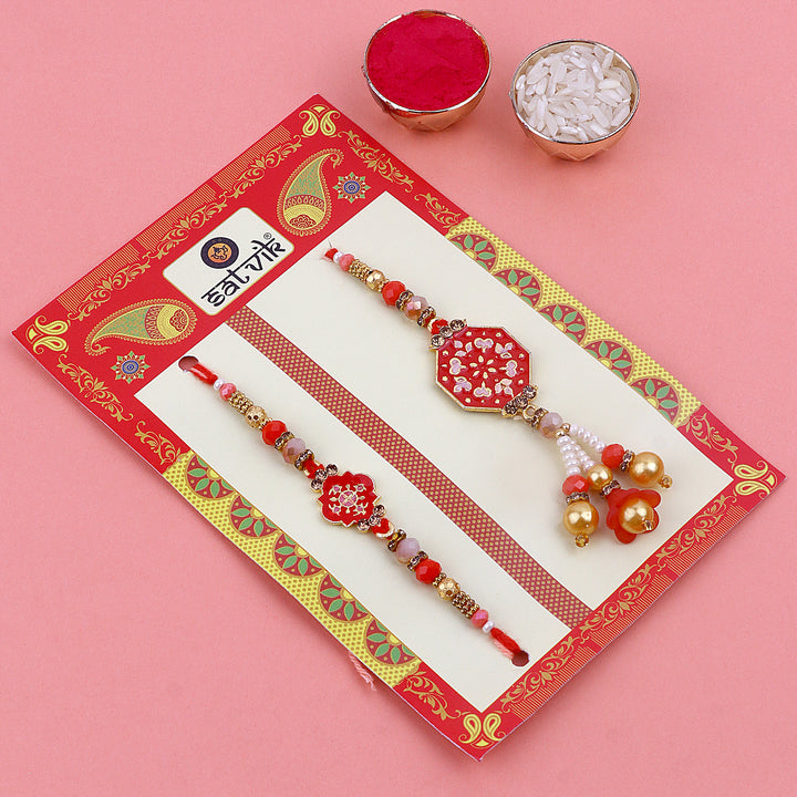 • Item Name:  Richly Designed Beaded Bhaiya Bhabhi Rakhi Set