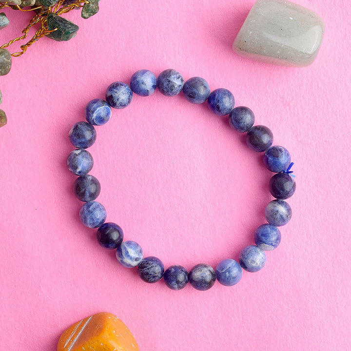 About Product: The Authentic Sodalite Crystal Bracelet for Reiki Healing 8 MM is crafted from genuine, natural Sodalite stones, known for their striking deep blue hue with white streaks. Sodalite is often called the β€œStone of Logic” β€” it promotes mental clarity, deep insight, and balanced emotions, making it perfect for meditation and Reiki healing. This soothing crystal helps you calm an overactive mind, enhances communication, and brings emotional balance.
