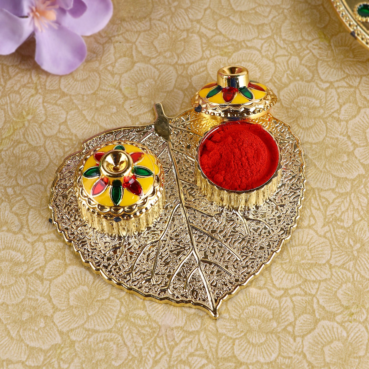 Buy Beautiful Roli Akshat Small Pan Leaf Platter | Satvikstore.in – satvikstore.in