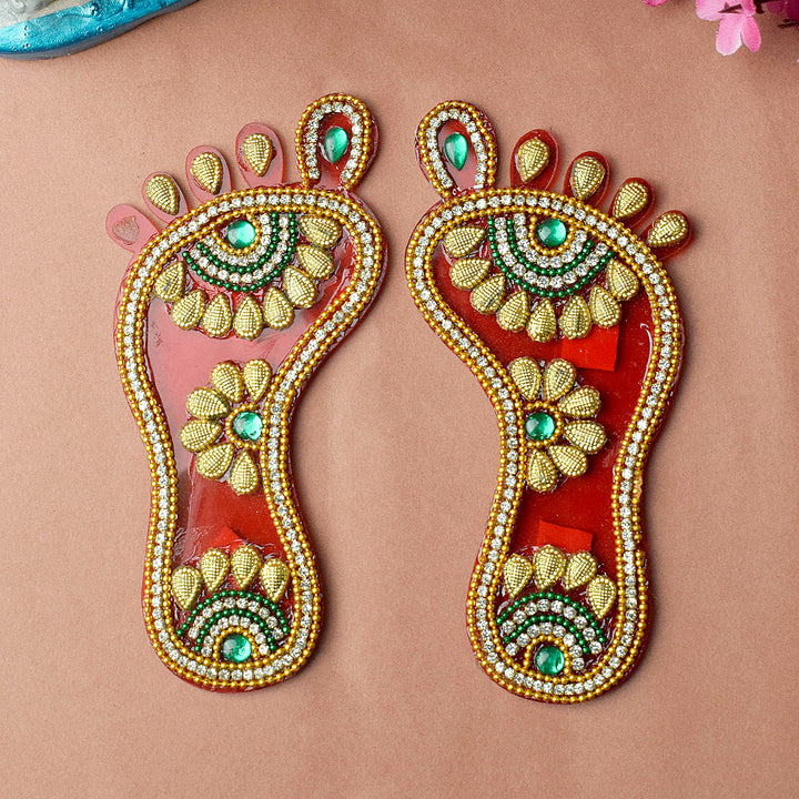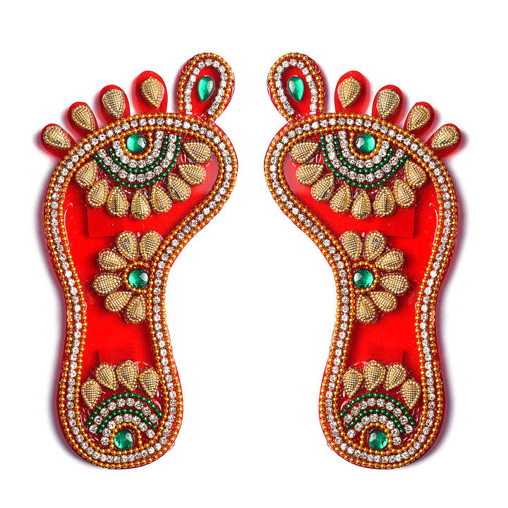 Laxmi Charan ensemble | Blessed imprints sticker | Goddess Laxmi footprints | Charan paduka for pooja | Prosperity footprint sticker | Laxmi feet stickers | Lakshmi paduka set | Divine footprint decor | Auspicious pooja stickers | Laxmi charan for entrance |