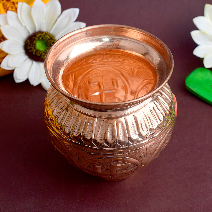 Copper Om Swastik Lota (Available in 3 Sizes)