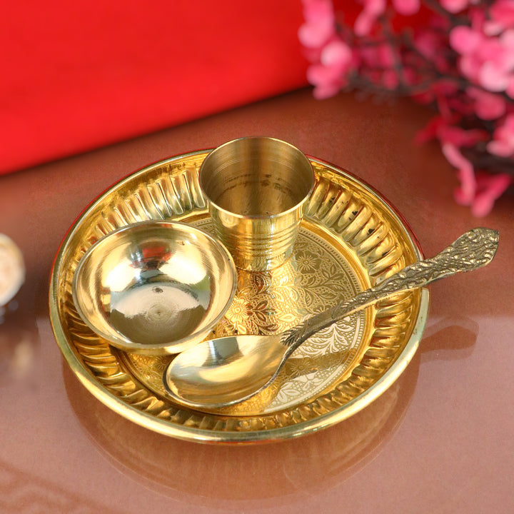 Pure Brass Laddu Gopal Pooja Bhog Thali Set (6 Inch - 7 Inch)