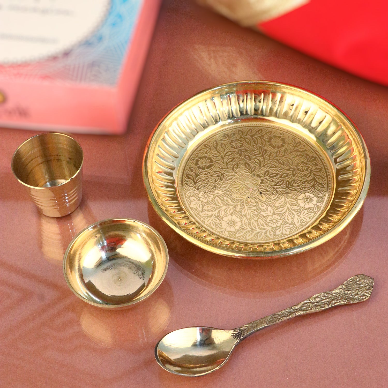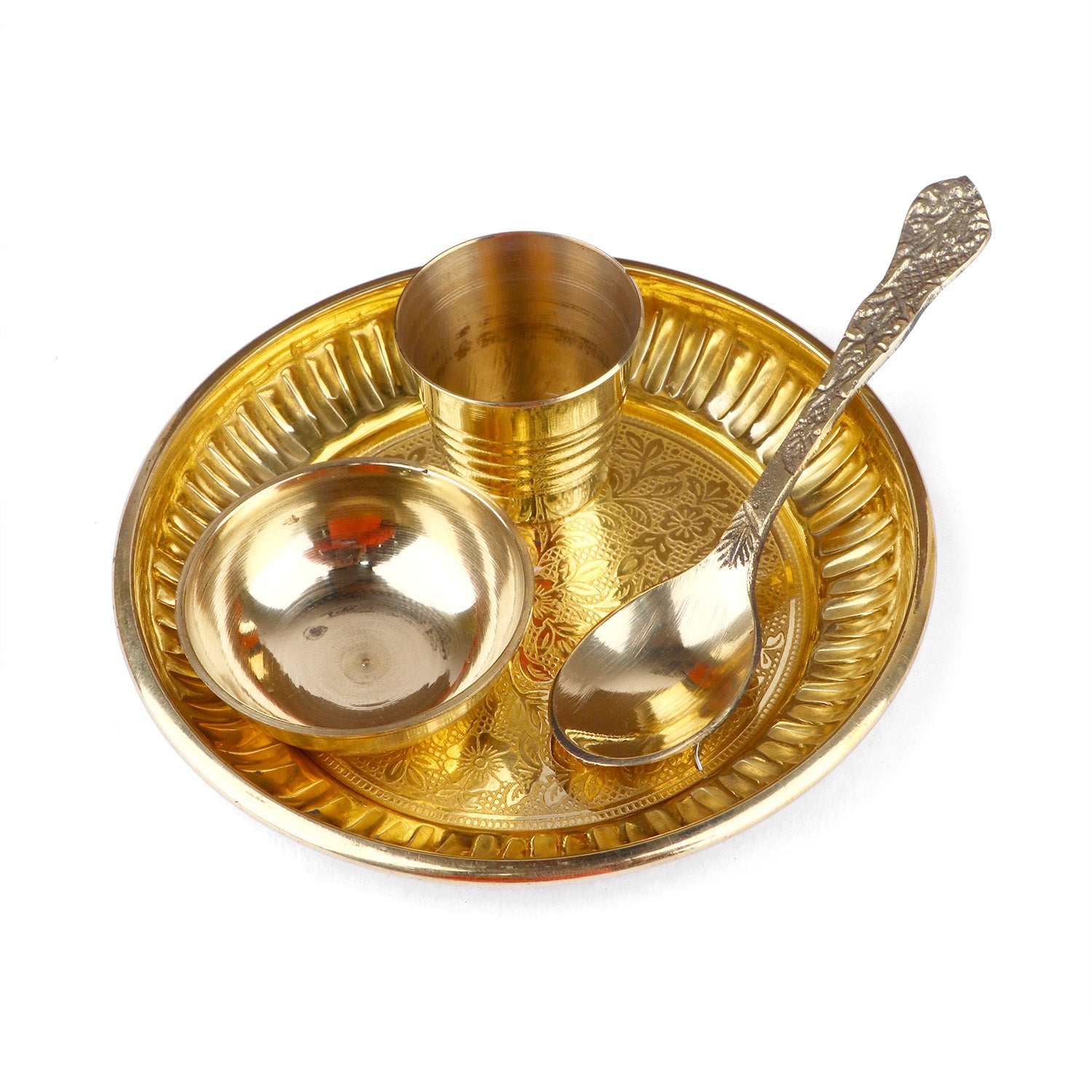 • Material: The Brass Puja Thali is made from High-Quality Brass Material