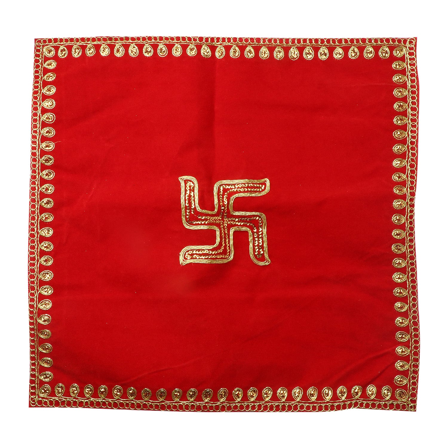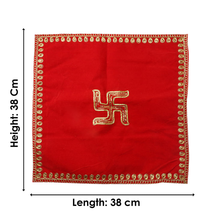 • Item Name: Swastik Red Velvet Puja Aasan (38 x 38 Cms) Set of 4