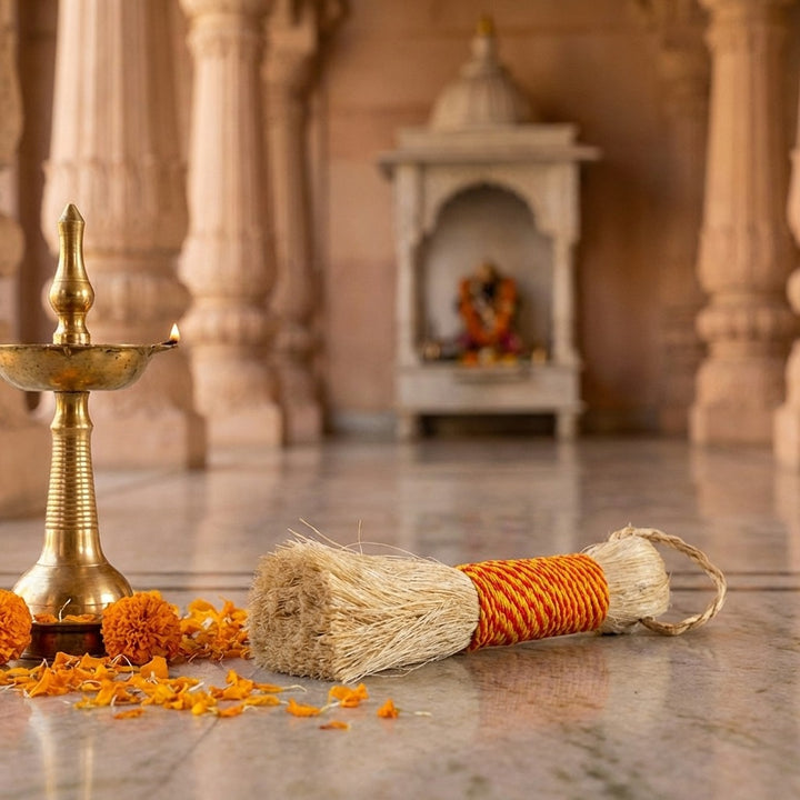 Temple Banana Broom | Small Temple Broom | Auspicious Broom for Pooja | Sacred Cleaning Broom | Banana Broom for Rituals | Spiritual Temple Cleaning | Pooja Space Cleaning Broom | Ritual Cleaning Tool | Divine Temple Broom | Sacred Broom for Worship | Banana Tree Broom | Temple Supplies | Religious Cleaning Broom | Ritual Cleaning Item | Small Pooja Broom | Temple Area Cleaning | Broom for Worship