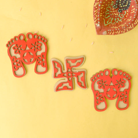 For those who appreciate the simplicity of tealights and candles, satvikstore.in offers an array of options, each exuding a unique charm. Decorating your home becomes a spiritual journey with Laxmi Charan and Swastik stickers, ensuring that auspiciousness permeates every corner.
