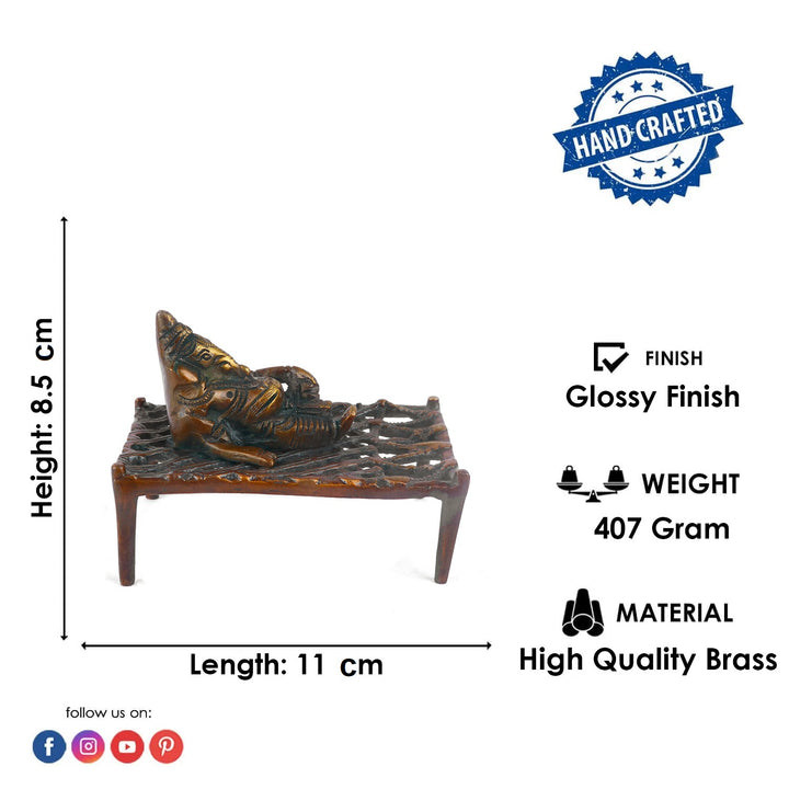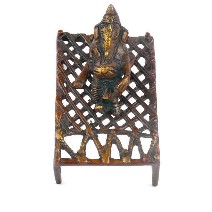 Puja Room Decor | Antique Finish Brass Charpoy | Handmade Brass Charpoy | Ganesha Relaxing On Charpoy | Exclusive Ganesha Relaxing on Charpoy | Brass Charpoy |