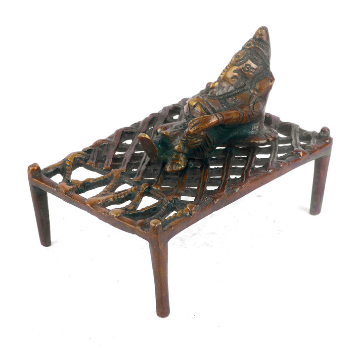 Buy Online | Antique Brass Ganesha Relaxing On Charpoy |Satvikstore.in – satvikstore.in