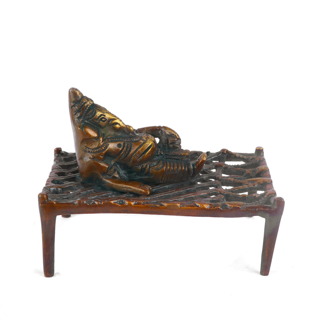3.3 Antique Brass Ganesha Relaxing On Charpoy