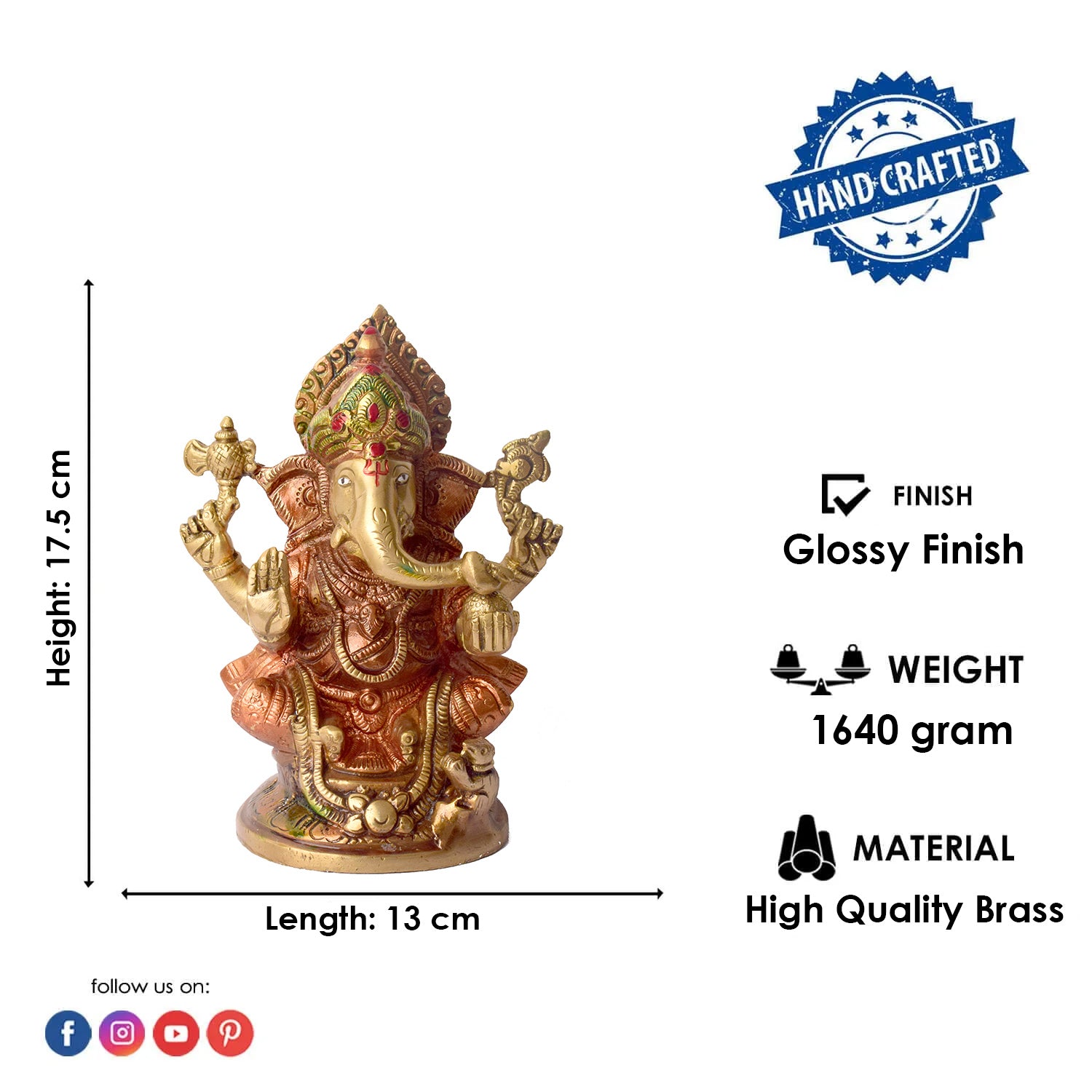 • Material: The Vinayak Idol is made from Pure Brass Virgin Material.