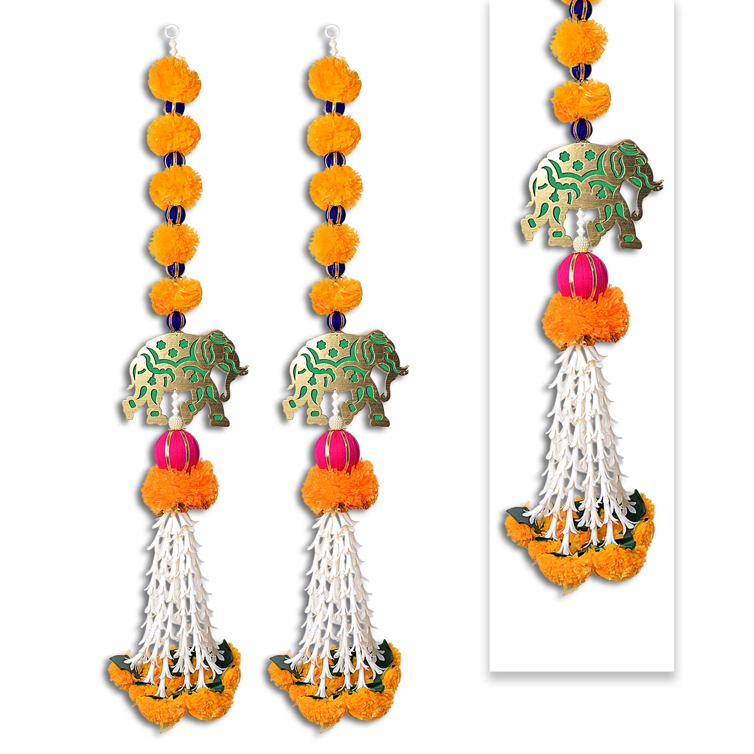Item Name: Artificial Marigold Flowers with Elephant Wall Hanging Latkans For Wall Decoration Decoration