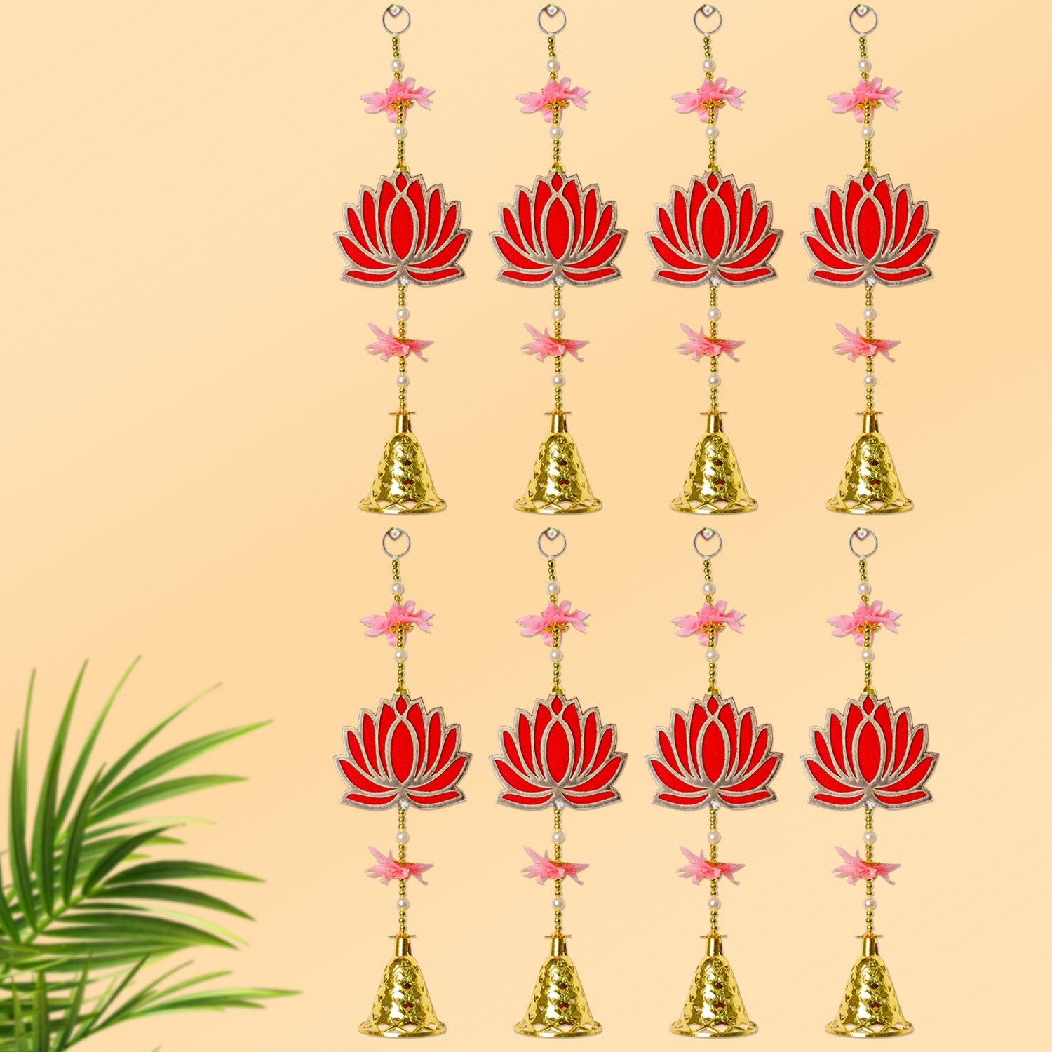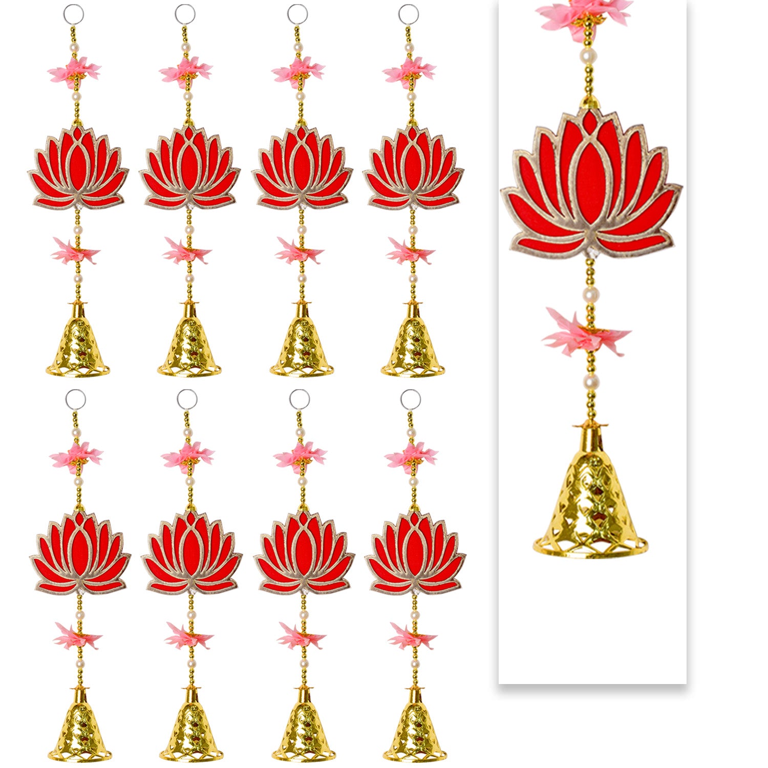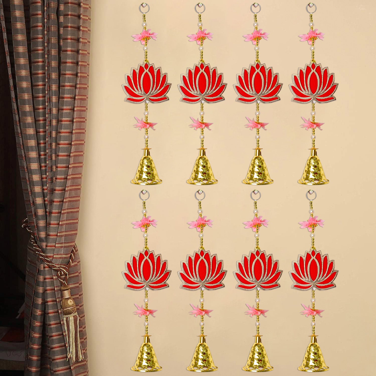 Item Name: Attractive 1 Tier Lotus with Bells Wall Hanging Backdrop (4Pair Latkans) For Wall Decoration
