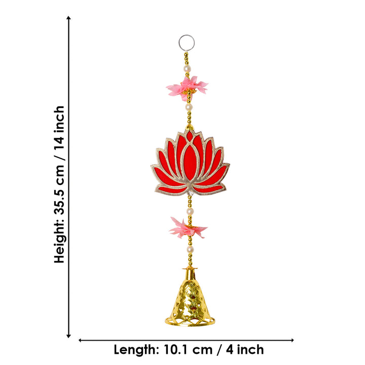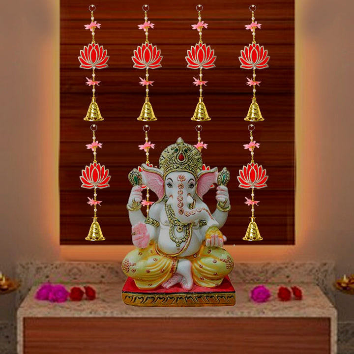 Attractive 1 Tier Lotus with Bells Wall Hanging Backdrop(4Pair Latkan) – satvikstore.in