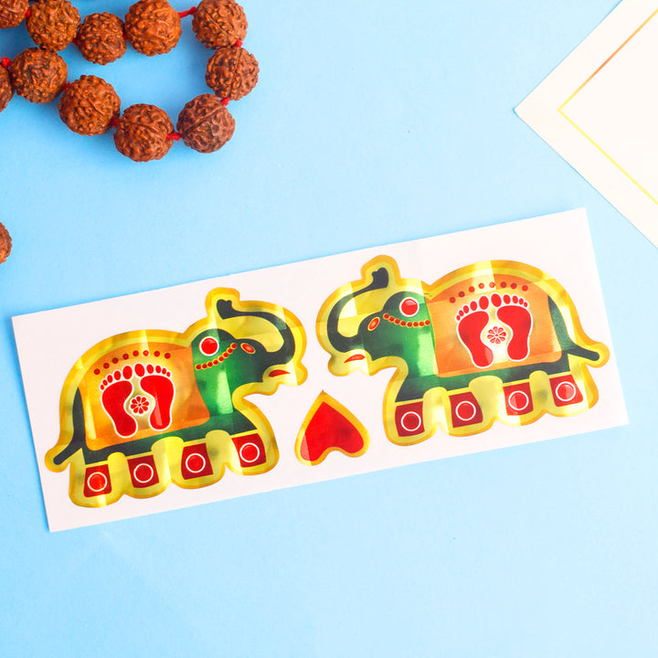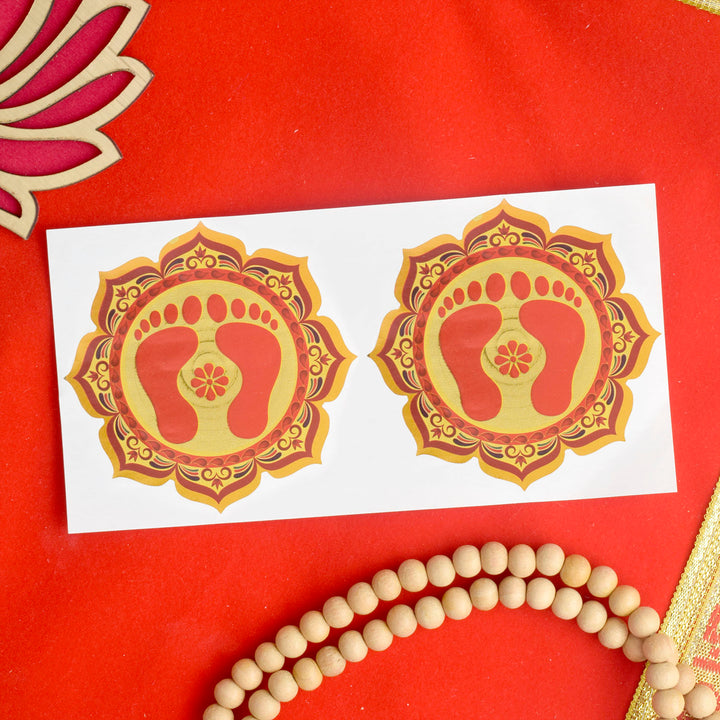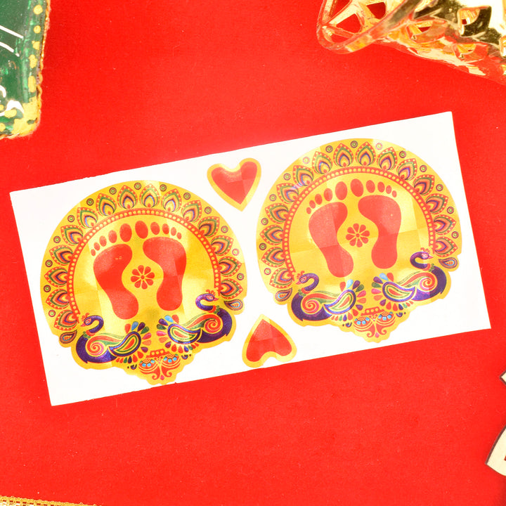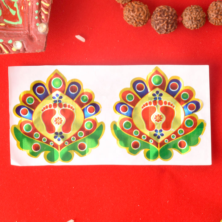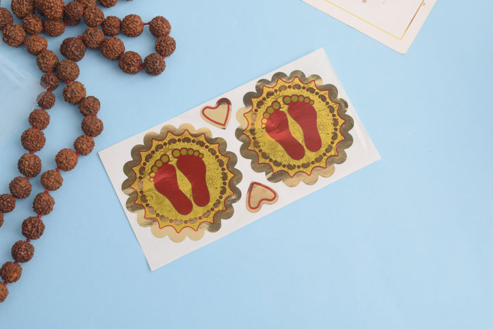 "Charan Prints with Traditional Designs Stickers (Assorted) – Celebrate spirituality with these exquisite stickers featuring Charan footprints adorned with intricate traditional patterns. Available in an assortment of vibrant designs, these stickers add a sacred and decorative touch to your spiritual spaces, gifts, or personal items."Β