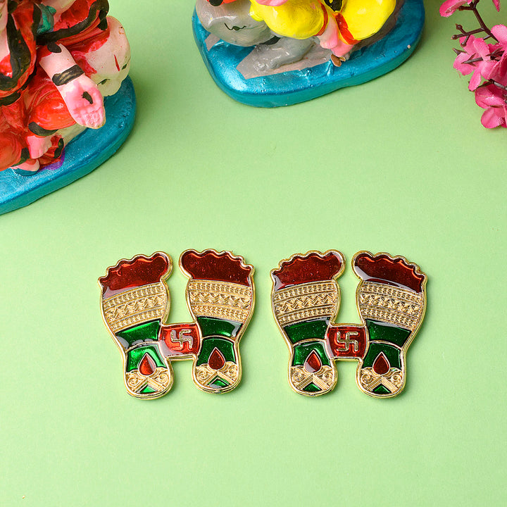 About Product: Laxmi Charan, intricately designed and crafted, embodies the divine essence of Goddess Lakshmi's footsteps. This sacred representation is a visual ode to prosperity and blessings. The artistry captures the fine details of the goddess's feet, symbolizing her benevolent presence and the auspicious trail she leaves behind.
