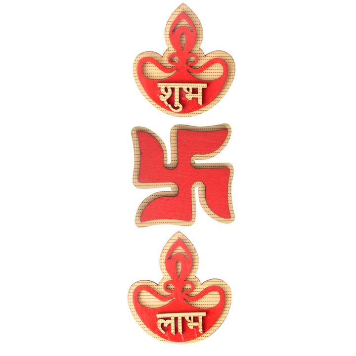 Shubh Labh Leaf With Swastik Wooden StickerPackage Contains: 1 Pair Shubh Labh and Swastik ji Wall Sticker