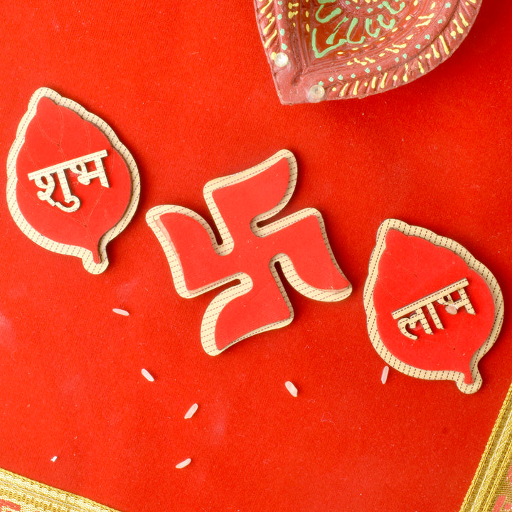 Shubh Labh Leaf With Swastik Wooden Sticker