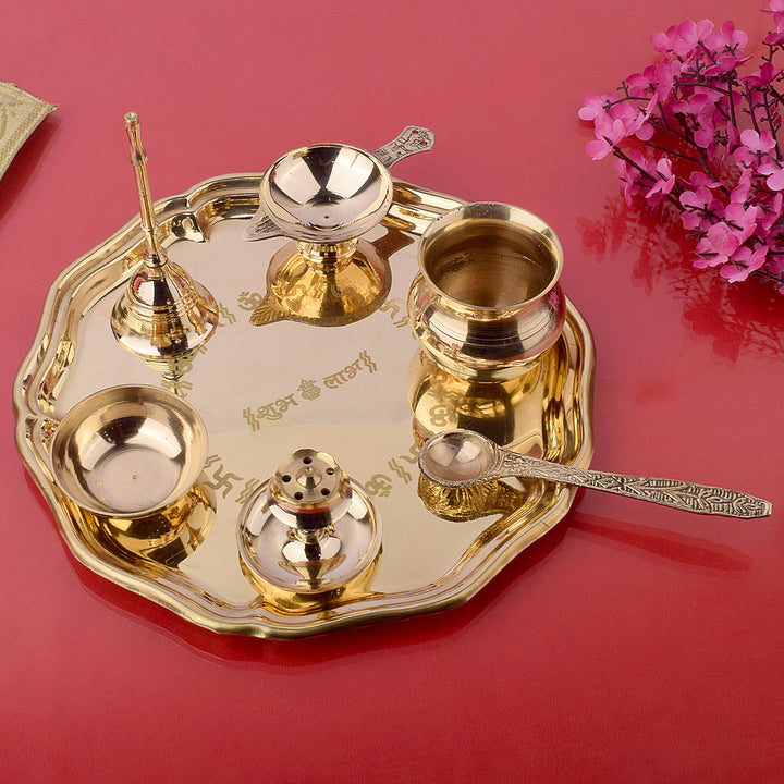 Buy Brass Shubh Labh Pooja Thali Set 7 piece (8 Inch) | Satvikstore.in – satvikstore.in
