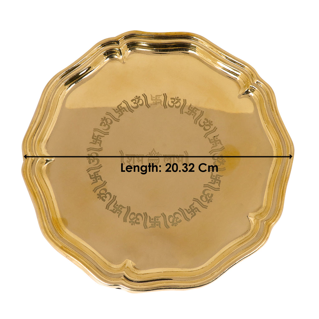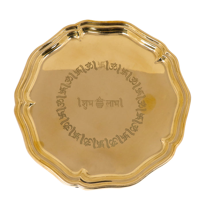Item Name: 7 Piece Brass Shubh Labh Pooja Thali Set (8 -9 Inch) Design 8