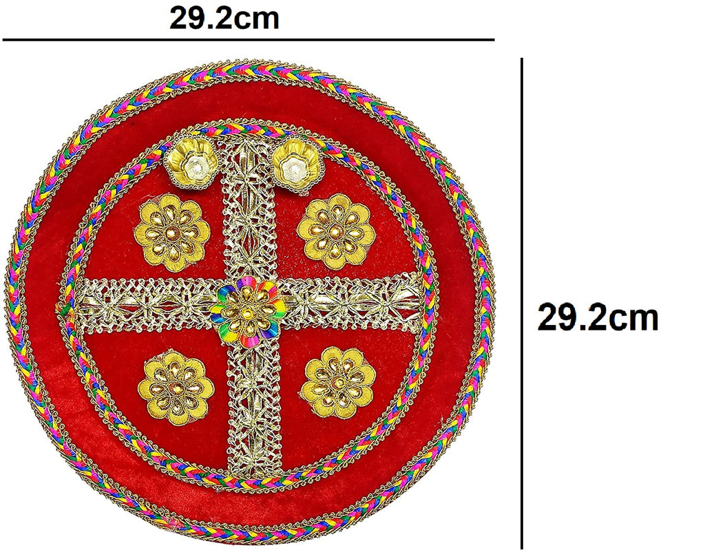 Designer Red Velvet Thali for Pooja at Best Price | Buy Online – satvikstore.in