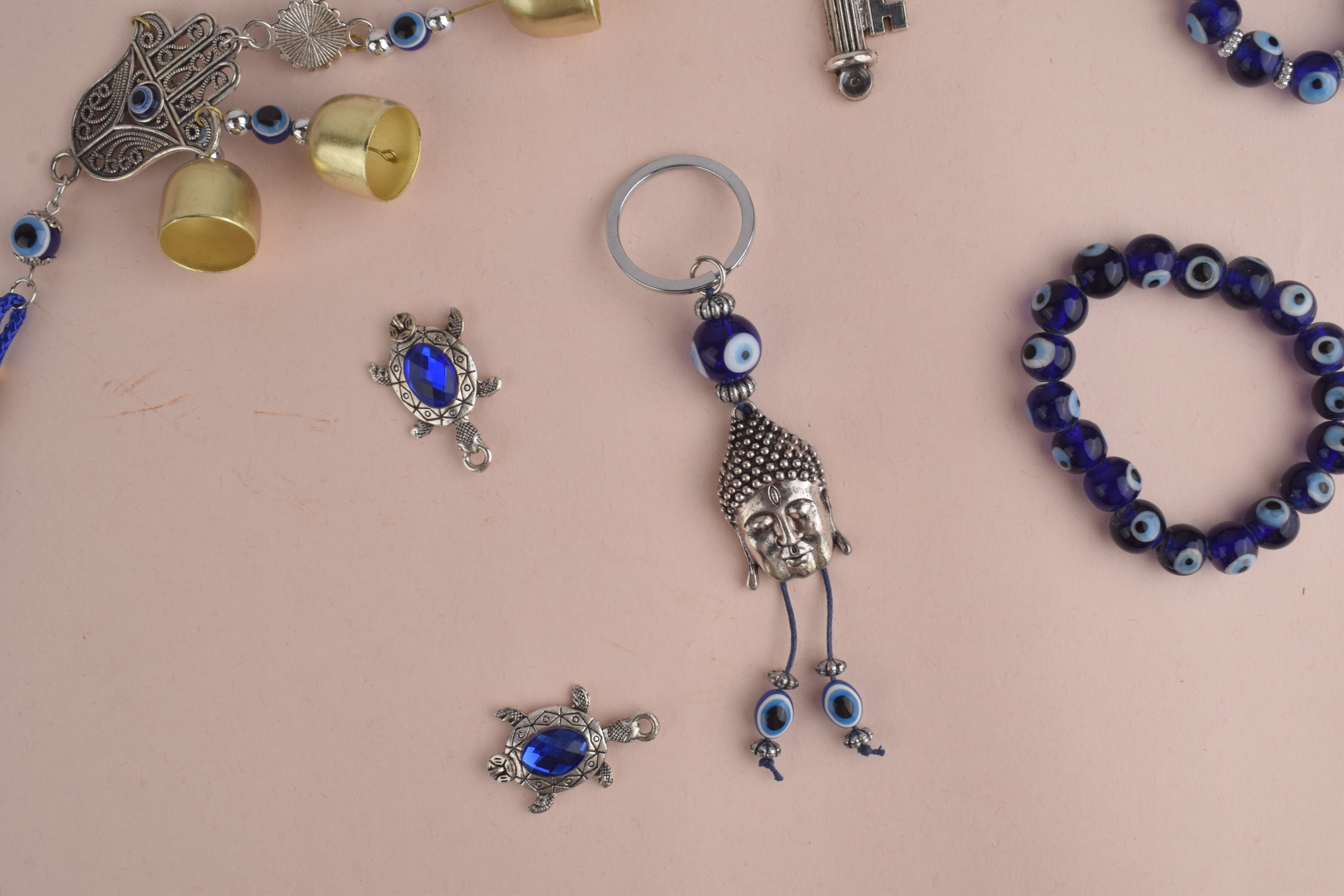 Alluring Silver Plated Buddha Keychain with Evil Eye | Buy Online | Satvikstore.in – satvikstore.in