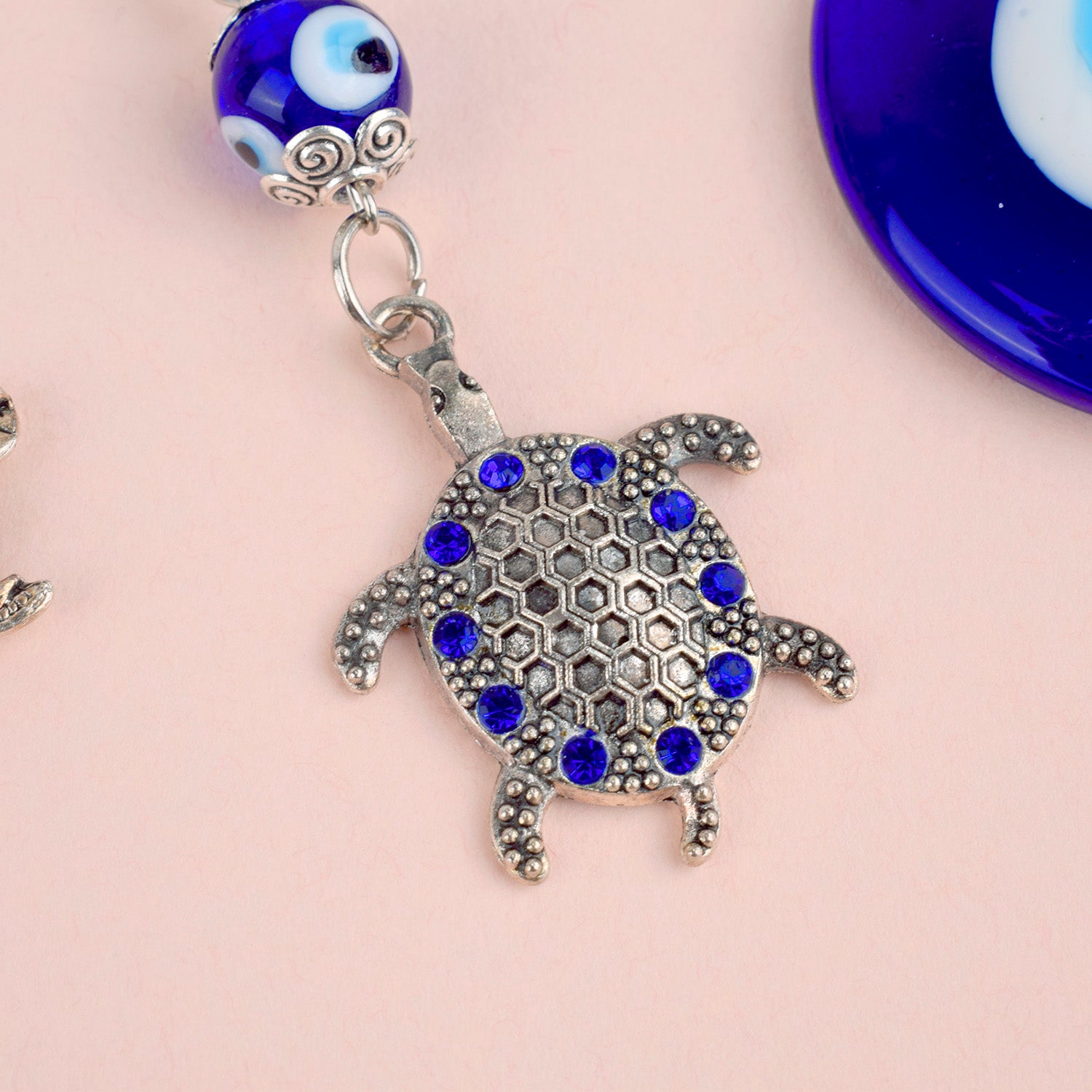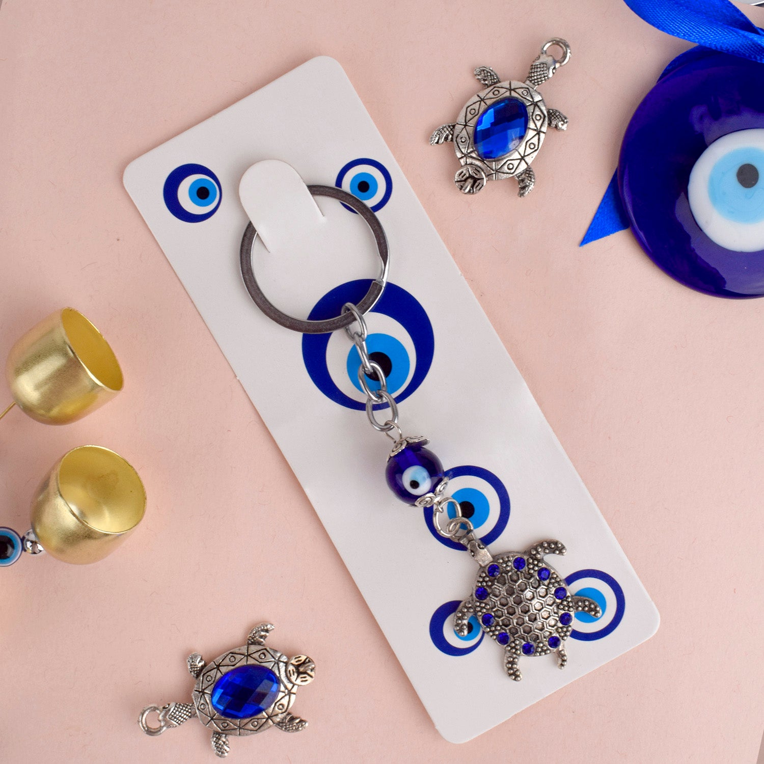 Blue Bead Silver Plated Evil Eye Turtle Keychain | Buy Online | Satvikstore.in – satvikstore.in