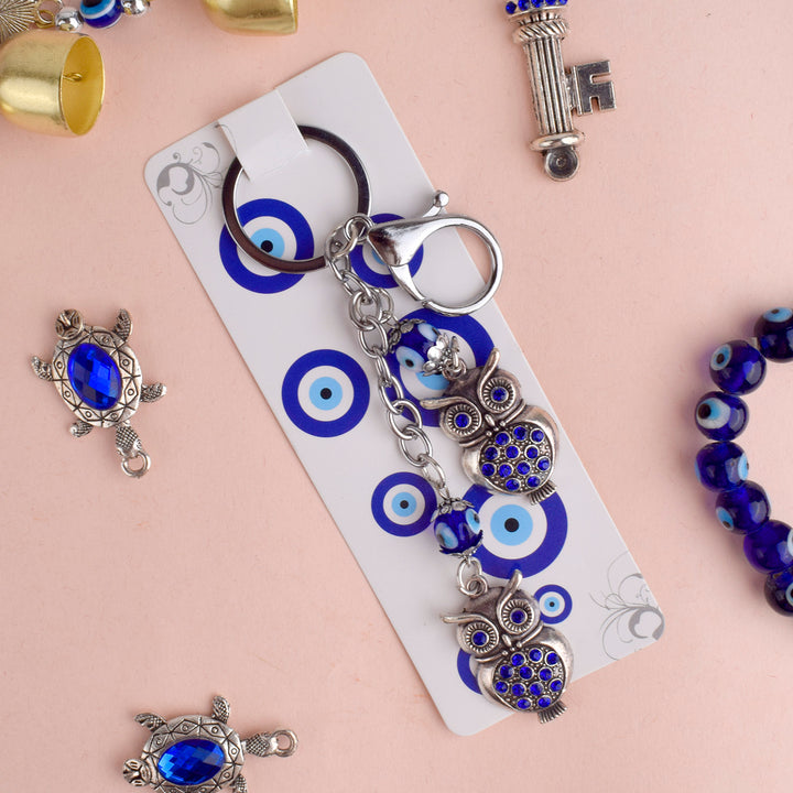 Adorable Double Owl Keychain with Evil Eye | Buy Online | Satvikstore.in – satvikstore.in