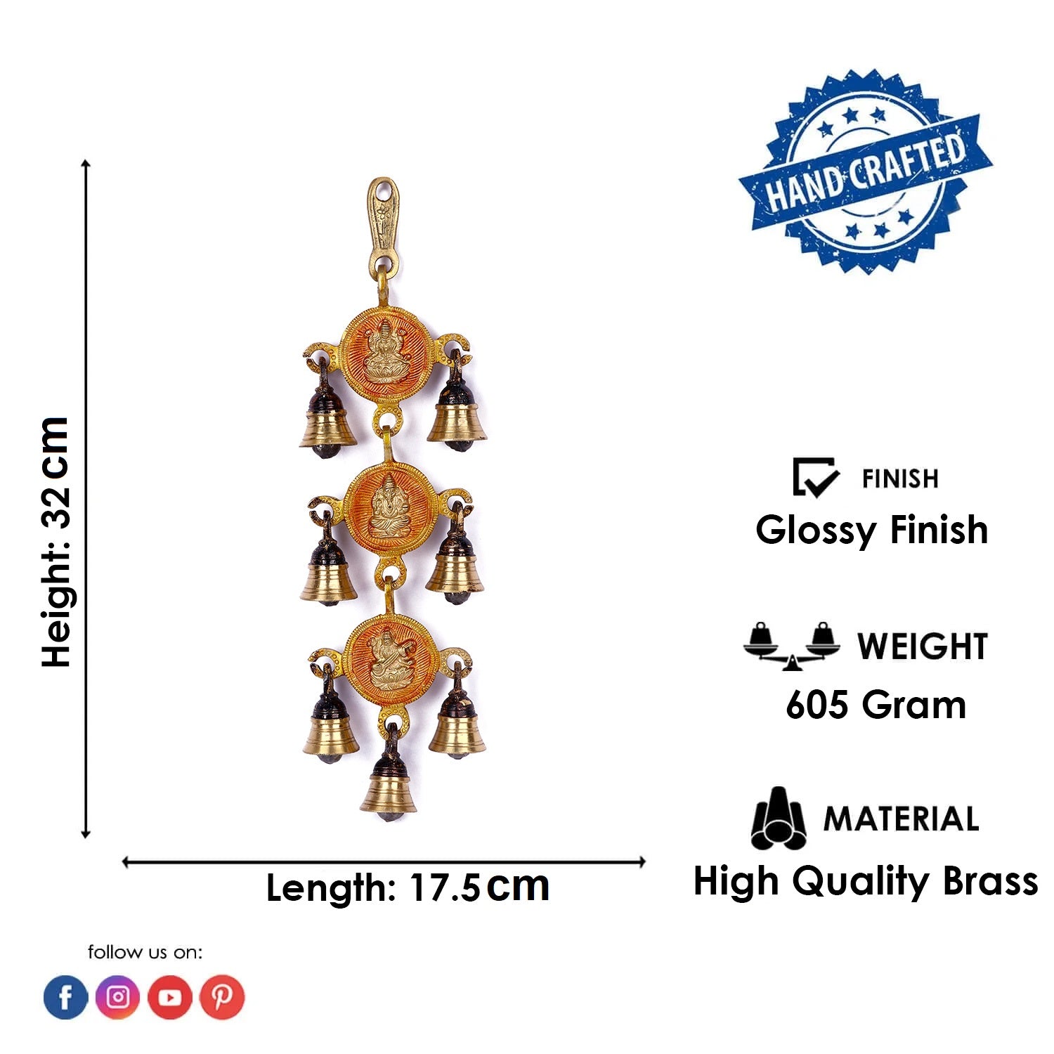 • Quality & Craftsmanship: Keeping the purity of Wall Hanging Laxmi, Ganesh and Saraswati. The Wall Hanging is made from Virgin Quality Brass Material which makes it 100% Pure and Long lasting, High-Quality Finishing and Detailing Work.