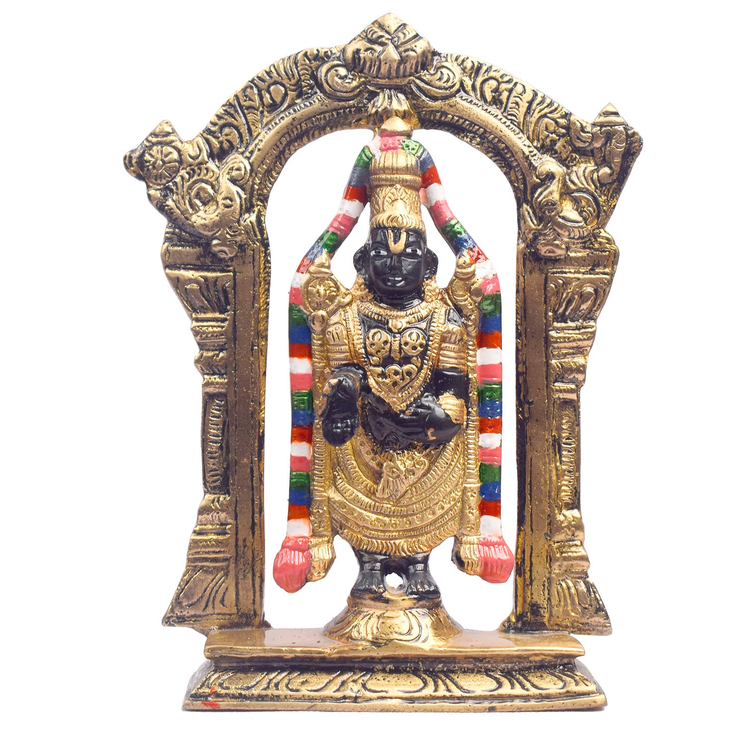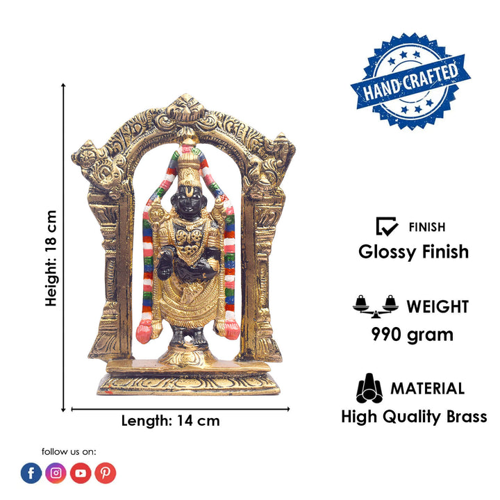 About Product: This 7.1-inch Tirupati Balaji statue beautifully captures the divine presence of Lord Venkateshwara, the beloved deity of the Tirupati temple. Crafted with exquisite attention to detail, the statue radiates grace, serenity, and spiritual blessings. Known for his power to bestow prosperity, health, and peace, Lord Balaji's idol brings a sense of calm and positive energy to any space. Perfect for your home, temple, or prayer room, this statue serves as a constant reminder of devotion and divine grace, inviting Lord Venkateshwara's blessings into your life.