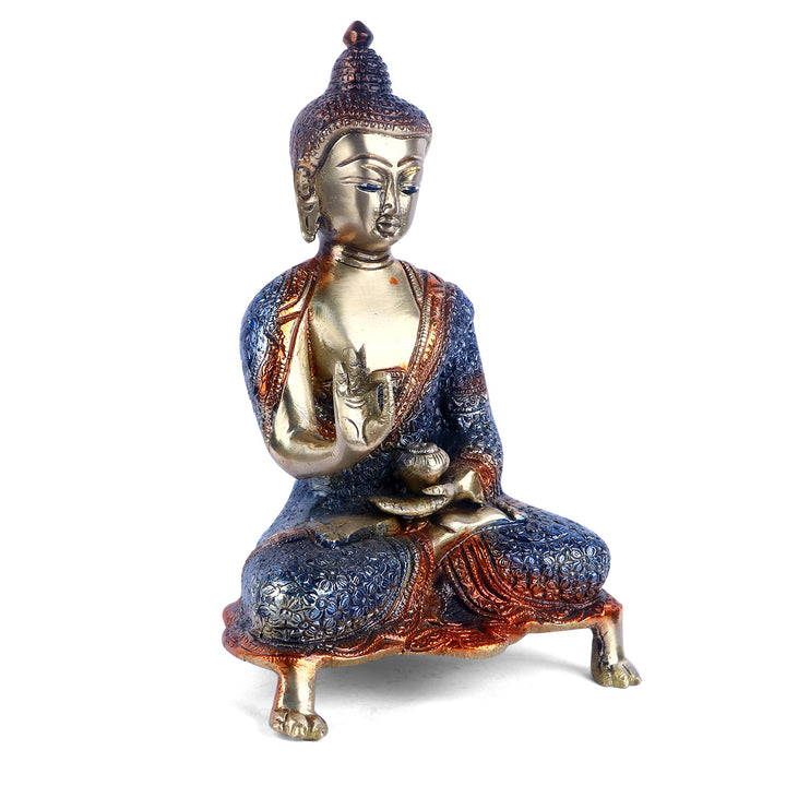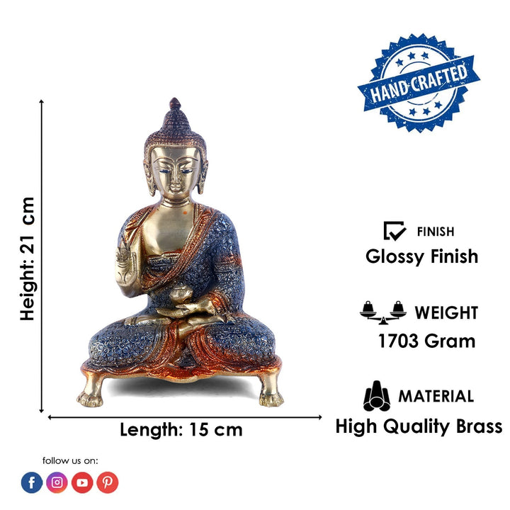 • About the Product:  8.3 Inch Contemplative Brass Colorful Buddha Idol Blue