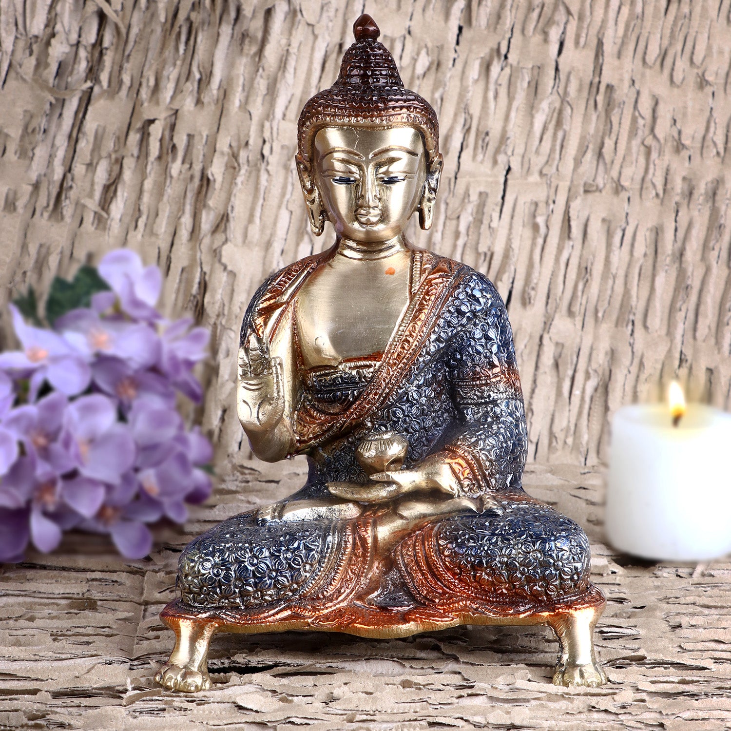 Shop Pure Brass Colorful Buddha Idol Blue Buy Online | Satvikstore.in – satvikstore.in