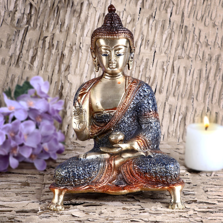 Colorful Brass Buddha Statue | Blue Buddha Idol | Handcrafted Buddha Idol | Brass Buddha Idol for Decor | Brass Idol | Buddha Statue Sitting Posture | Brass Gift Item for Housewarming | Blue Brass Buddha Showpiece |
