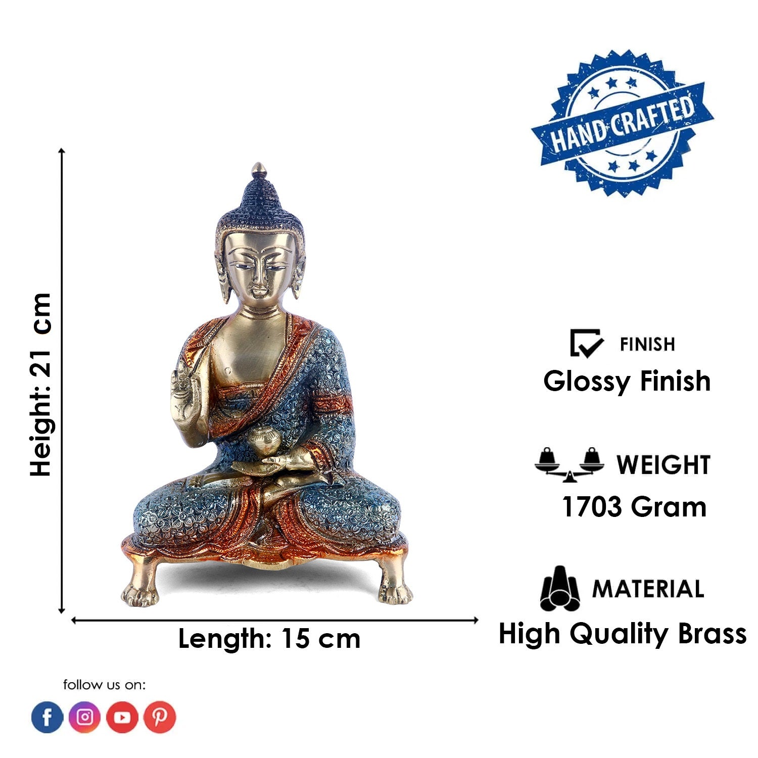 • Material: The Meditation Buddha Idol is made from Pure Brass Virgin Material.