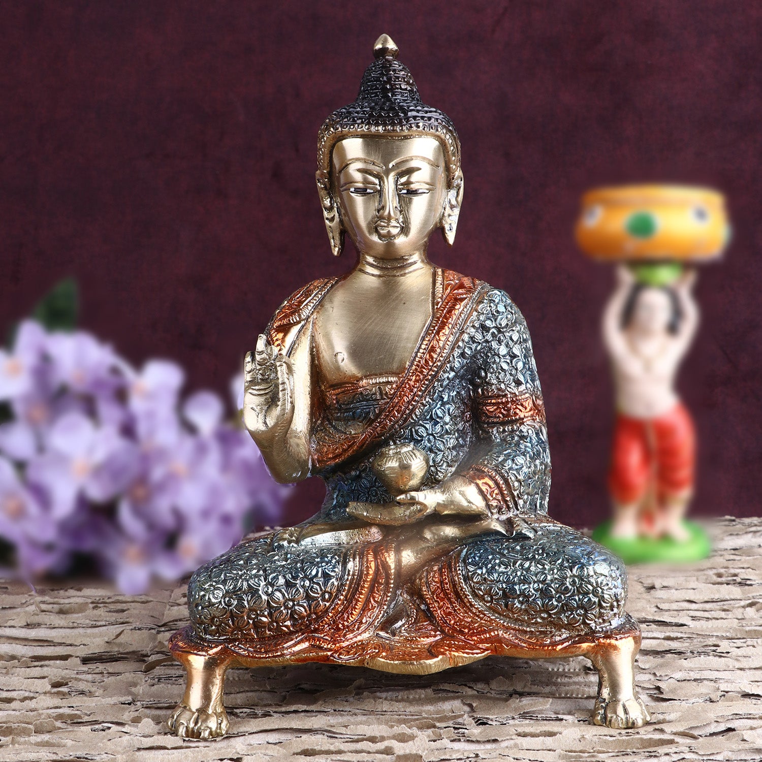 Brass Buddha Idol | Handcrafted Brass Buddha Idol | Colorful Brass Buddha Statue | Brass Gift Item for Housewarming | Brass Buddha Statue for Decor | Antique Look Brass Buddha | Brass Idol | Exclusive Brass Idol |