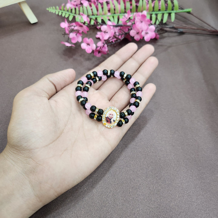• Item Name: Black And Baby Pink Pearl Bracelet with Jai Guruji Swaroop Handmade Bracelets for Men and Women