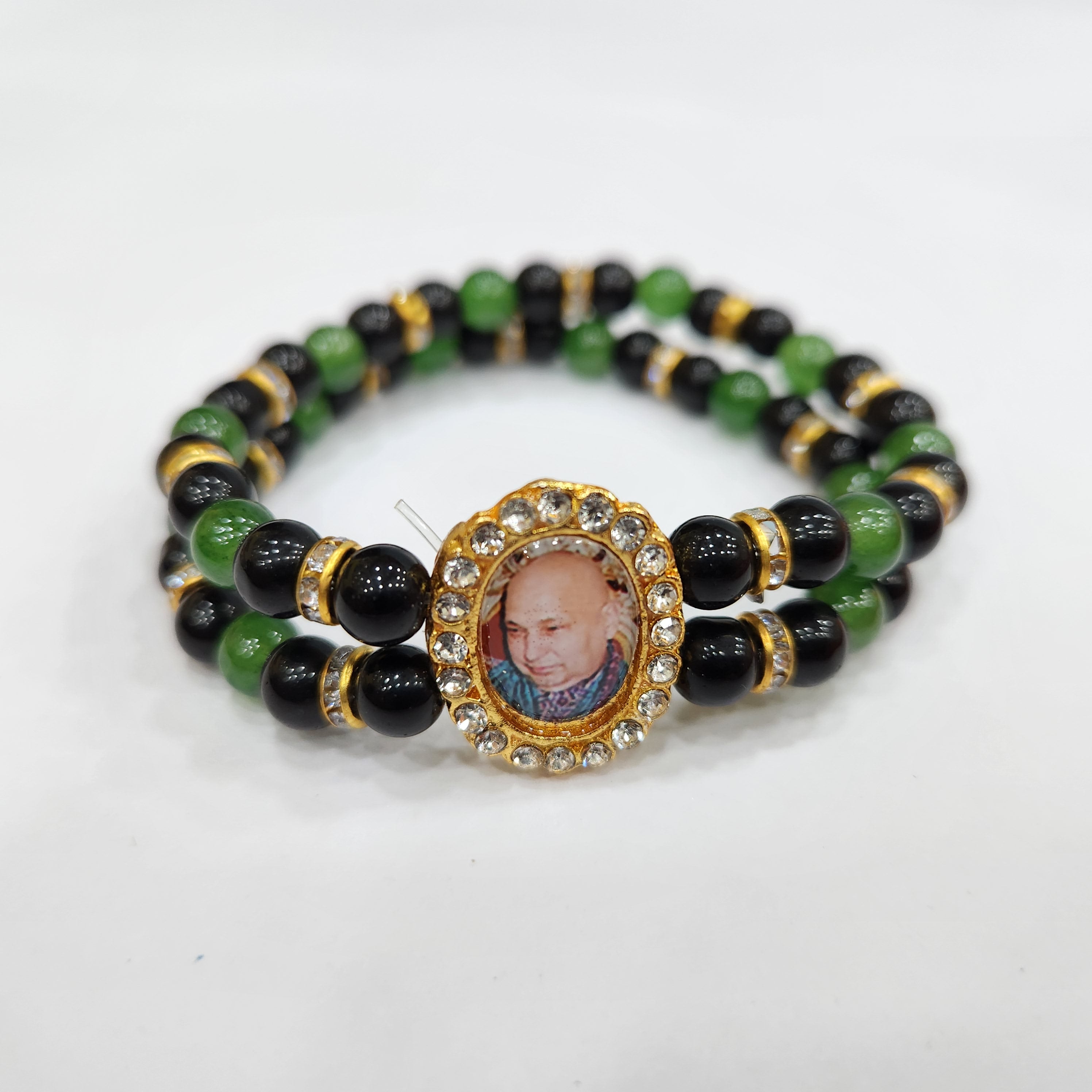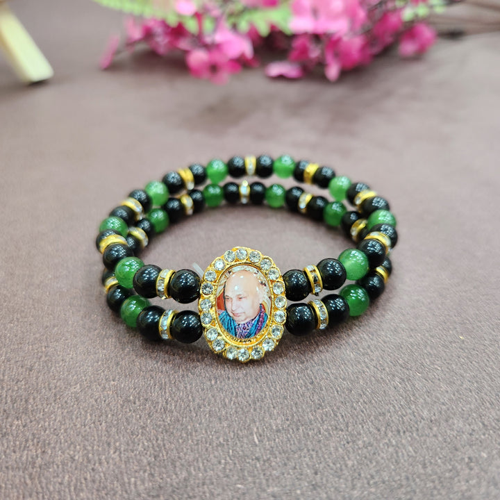 Black And Green Round Pearl Bracelet with Jai Guruji Swaroop Handmade Bracelets for Men and Women.