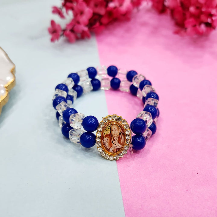 • Item Name: Blue And Crystal Clear Beaded Guru Ji Maharaj Handmade Bracelets for Men and Women