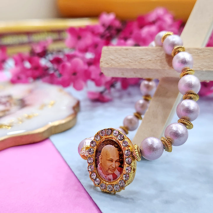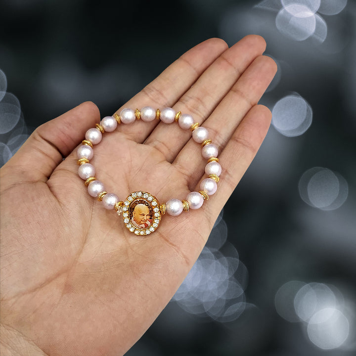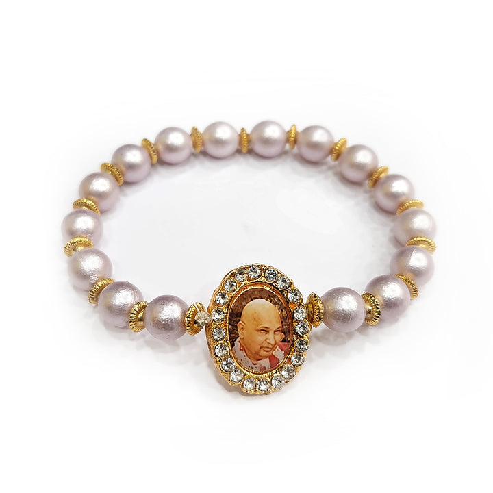 Our Guruji bracelet is a tangible symbol of divine connection. Crafted with care and reverence, it is designed to be worn close to your heart, serving as a constant reminder of Guruji's presence. The bracelet is adorned with sacred symbols and gemstones that hold spiritual significance, channeling positive energy and protection.