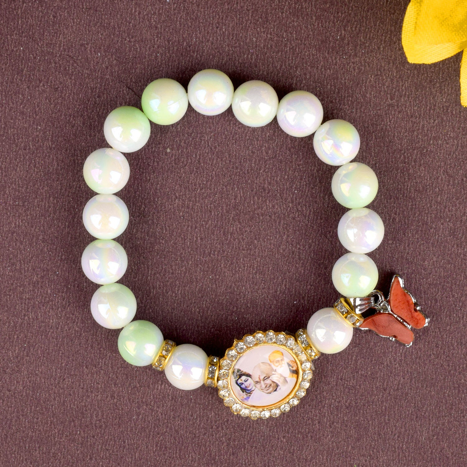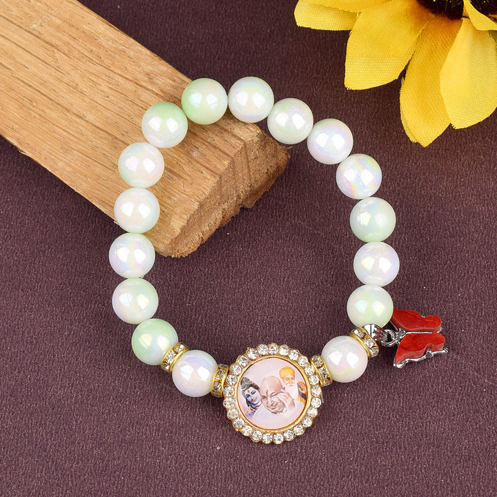 Butterfly Green & White Shade Bracelet with Jai Guruji Swaroop Handmade Bracelets