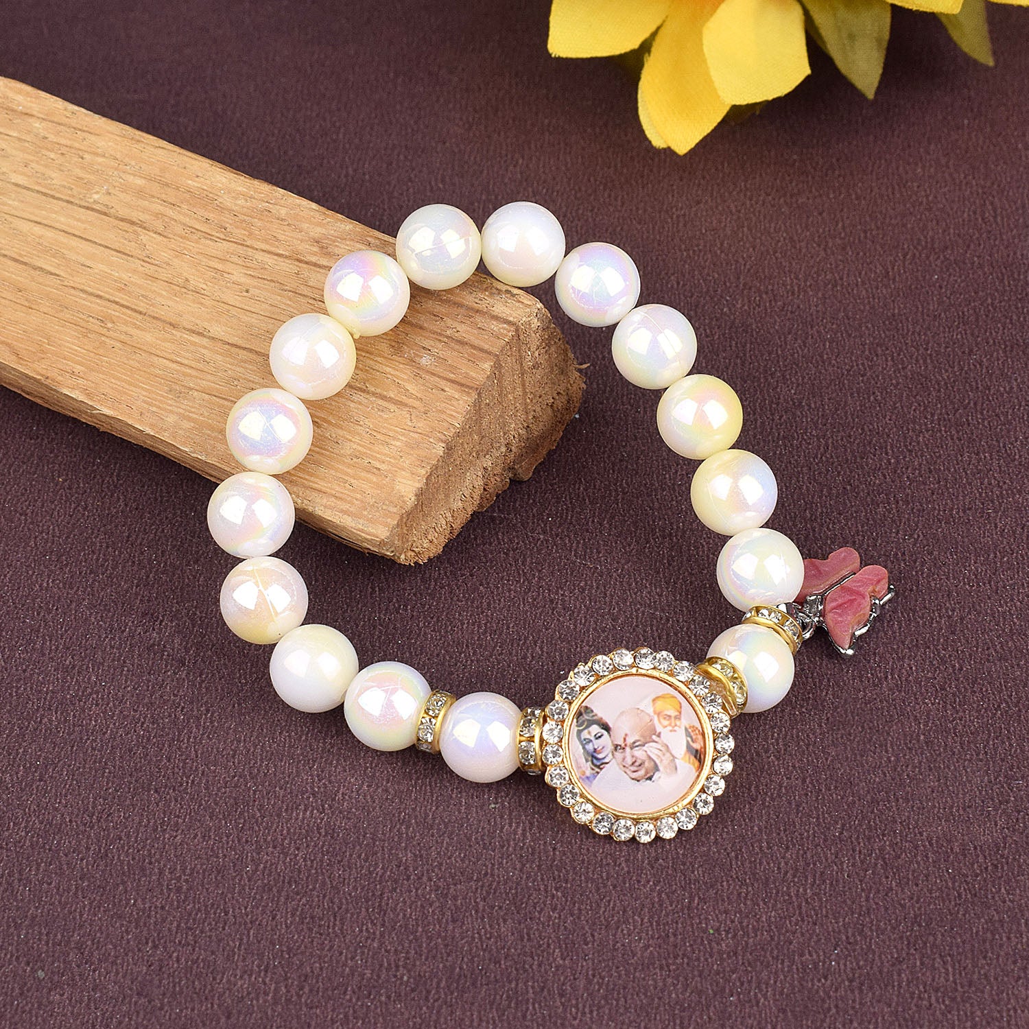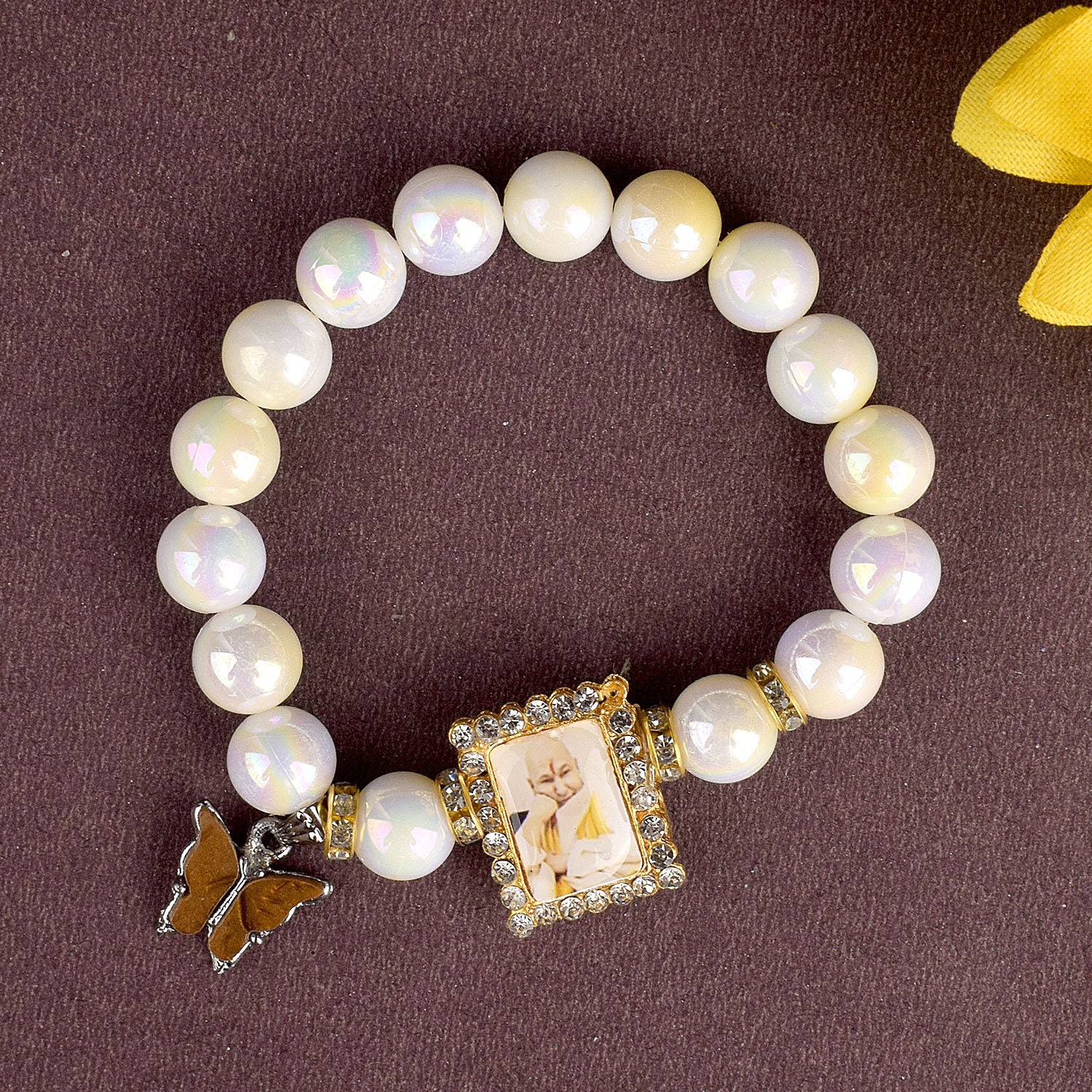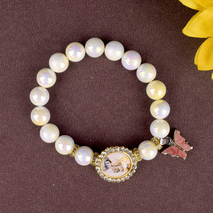 Butterfly Yellow & White Shade Bracelet with Jai Guruji Swaroop Handmade Bracelets