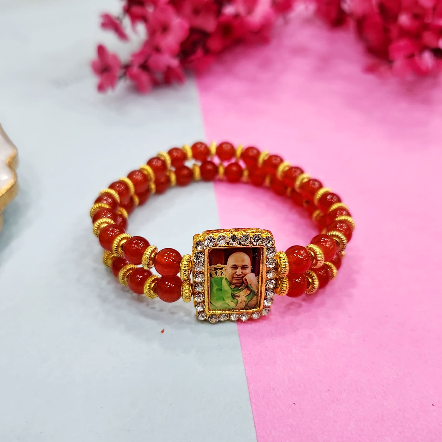 Cardinal Red Beaded Guru Ji Maharaj Swaroop Bracelet | Satvikstore.in – satvikstore.in